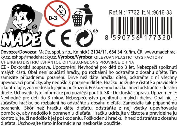 Il set da dottore per bambini farà felici tutti i piccoli medici. Le dimensioni compatte e la struttura leggera in plastica di qualità garantiscono un gioco sicuro e confortevole a casa e in viaggio. Grazie ai due tipi di strumenti, i bambini possono sperimentare i ruoli medici di base e allenare la motricità fine e la comunicazione.