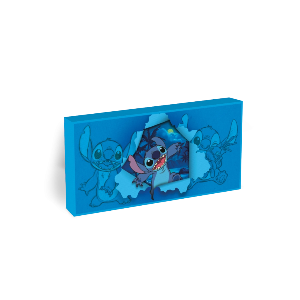 Grazie alla struttura leggera e robusta, il quadro si appende facilmente alla parete o si appoggia su una mensola. È ideale come luce notturna, decorazione da collezione e regalo originale per gli amanti di Lilo & Stitch.