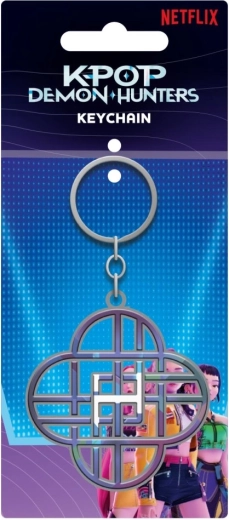 Questo portachiavi ufficiale con licenza K-pop Demon Hunters unisce lavorazione di qualità allo stile visivo unico della serie. Il corpo in metallo con complesso motivo geometrico che ricorda una croce o un quadrifoglio risulta pulito ed elegante, ma al tempo stesso abbastanza appariscente da catturare subito l’attenzione.