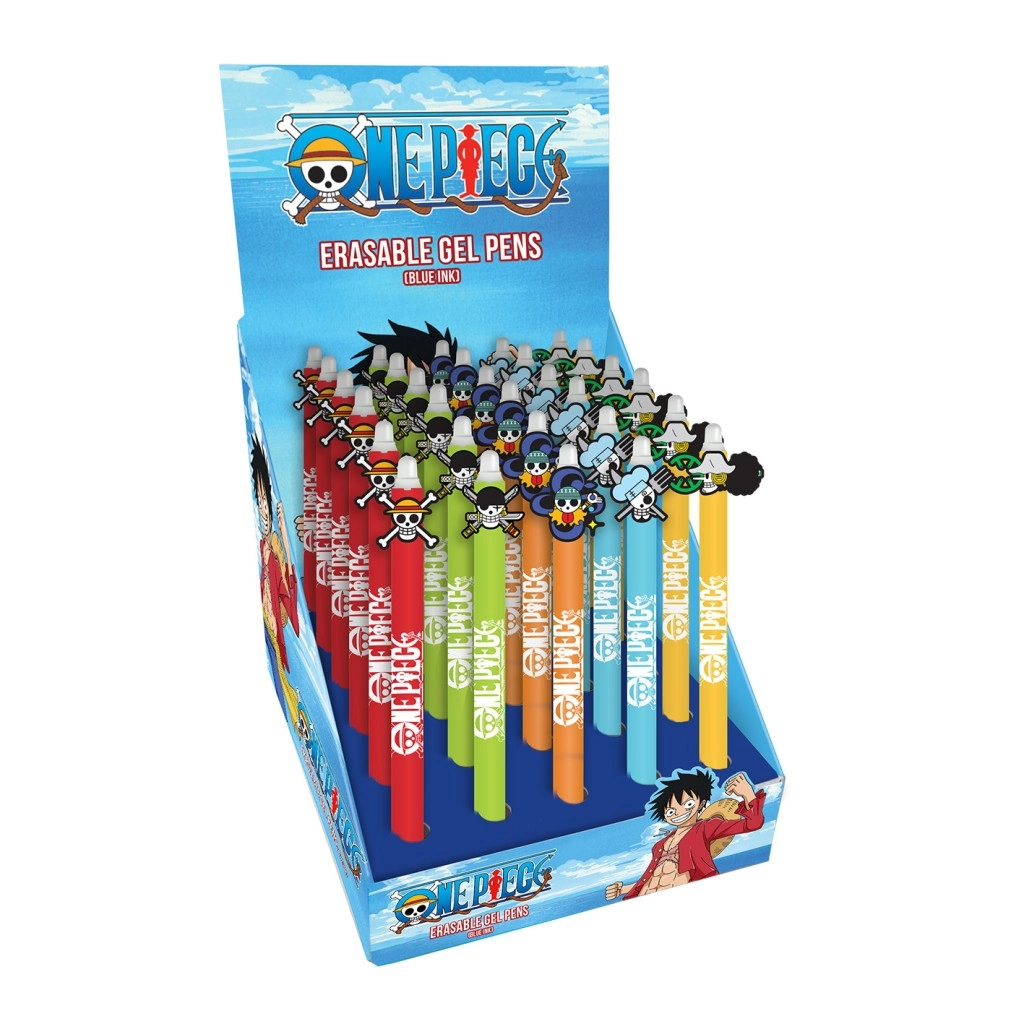 Il design con licenza ispirato a ONE PIECE in versione blu e bianca è arricchito da illustrazioni colorate dei personaggi e dal logo della serie. La confezione trasparente protegge il prodotto e consente di vedere l’aspetto della penna prima dell’acquisto.