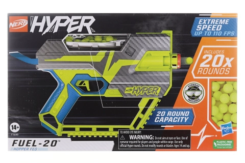 Il blaster NERF Hyper Fuel 20 è progettato per scontri rapidi e dinamici. Grazie alla forma compatta si maneggia facilmente e consente movimenti agili sul campo. La linea Hyper è nota per la rapida cadenza di fuoco e l’affidabile alimentazione delle munizioni, così potrai goderti un’azione fluida senza inutili interruzioni.