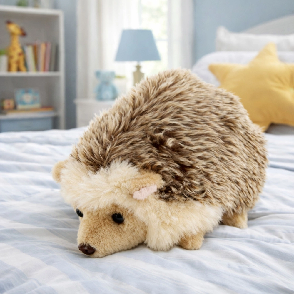 Questo riccio di peluche è realizzato in morbido peluche di alta qualità, delicato sulla pelle dei bambini e perfetto da abbracciare. Le tonalità naturali marrone–beige e i dettagli accuratamente rifiniti – nasino, orecchiette e morbidi “aculei” – conferiscono al giocattolo un aspetto realistico.