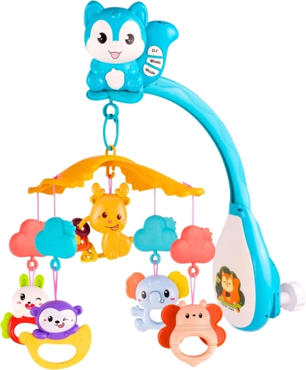 Questa giostrina multifunzione crea un’atmosfera tranquilla per addormentarsi facilmente e al tempo stesso stimola i sensi del bambino. Il proiettore a forma di scoiattolo proietta motivi colorati sul soffitto, mentre la rotazione a 360° fluida e le melodie delicate catturano l’attenzione del piccolo aiutandolo a calmarsi.