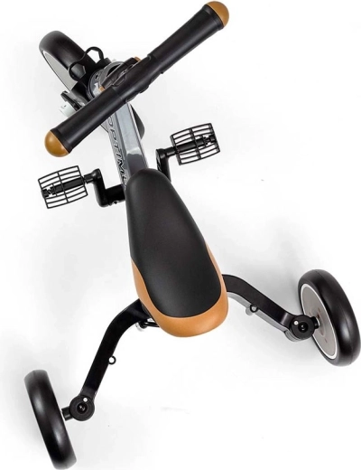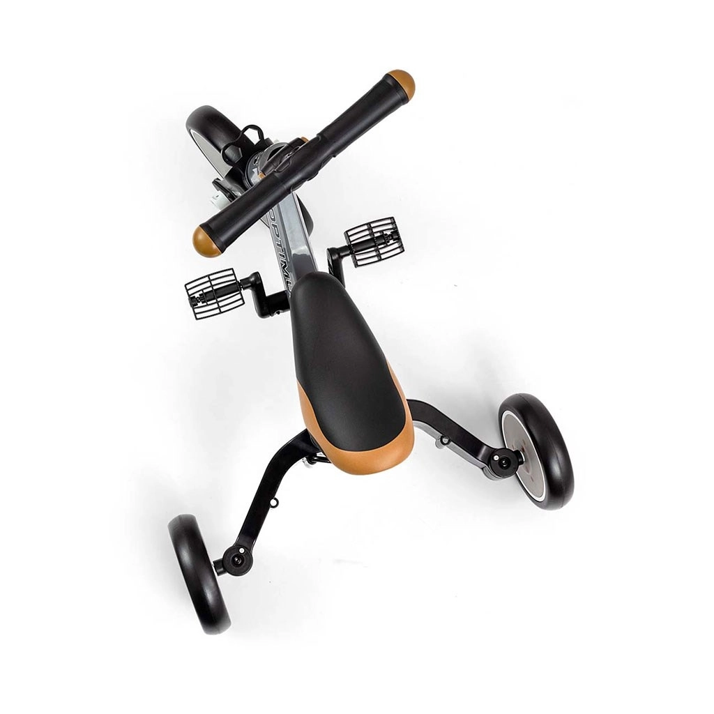 Passi rapidamente tra il triciclo base senza pedali, il triciclo a pedali con pedali sulla ruota anteriore e il semplice balance bike. Un unico veicolo per più fasi di sviluppo.