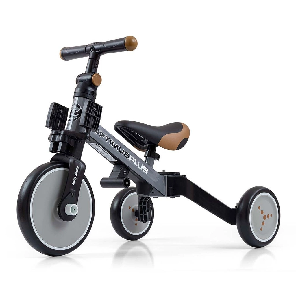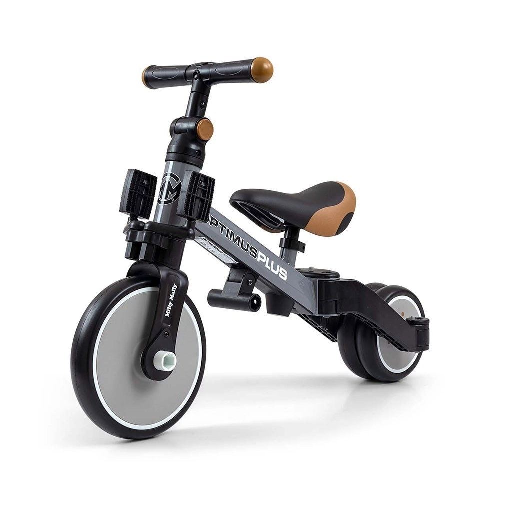 Il triciclo 4in1 MILLY MALLY OPTIMUS PLUS è progettato per facilitare le prime pedalate e sviluppare coordinazione ed equilibrio. La struttura versatile consente un rapido passaggio tra le modalità: triciclo base senza pedali, triciclo con pedali sulla ruota anteriore e semplice balance bike. Grazie alle ruote in schiuma, la guida è silenziosa, confortevole e con buona aderenza su diverse superfici.