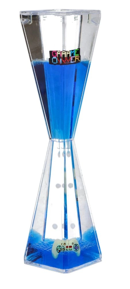 Goditi il tranquillo scorrere delle gocce nel corpo trasparente a forma di clessidra. Il gel fluisce dolcemente dalla camera superiore a quella inferiore creando un effetto ipnotico che aiuta a calmare la mente e a favorire la concentrazione. La grafica gaming e la scritta Game Over la rendono un regalo ideale per gamer e amanti degli oggetti di design.