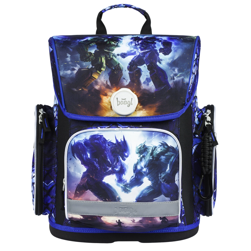 BAAGL set scolastico Robot offre ai bambini tutto ciò di cui hanno bisogno per la scuola e le attività extrascolastiche – in un design coordinato con tema battaglia tra robot. Il protagonista è la cartella solida, leggera ed ergonomica con sistema regolabile ERGO ADJUSTABLE SYSTEM, che cresce con il bambino e aiuta a distribuire correttamente il carico. La chiusura magnetica Fidlock consente un’apertura rapidissima e una chiusura automatica.