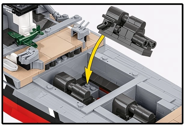 Icona della storia navale, il modello della BISMARCK offre un’esperienza monumentale sia nella costruzione sia nell’esposizione. Grazie alle proporzioni fedeli, alla sovrastruttura dettagliata e all’armamento, spicca in ogni collezione. Tutte le marcature e i dettagli sono stampati in modo durevole direttamente sui pezzi, così il modello mantiene un aspetto perfetto per molti anni.