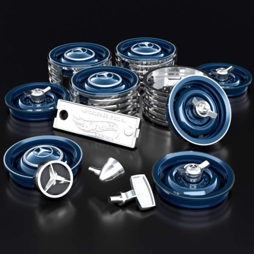 Il set include anche componenti in metallo per la personalizzazione: puoi cambiare i cerchi, gli specchietti o aggiungere il logo originale. Nella confezione trovi inoltre un piccolo modello in metallo 1:64, perfetto in vetrina. L’elegante confezione regalo farà felice ogni appassionato di progetti di costruzione.