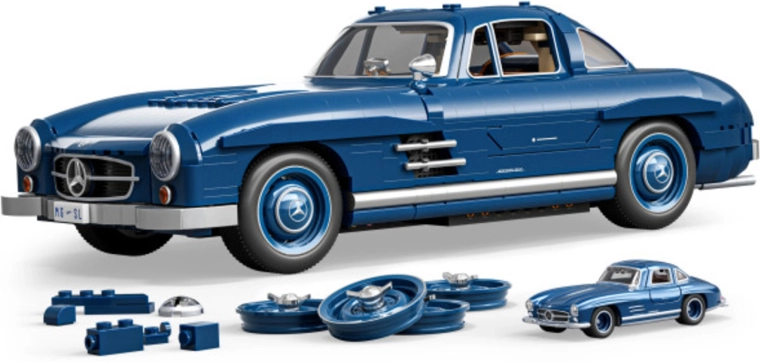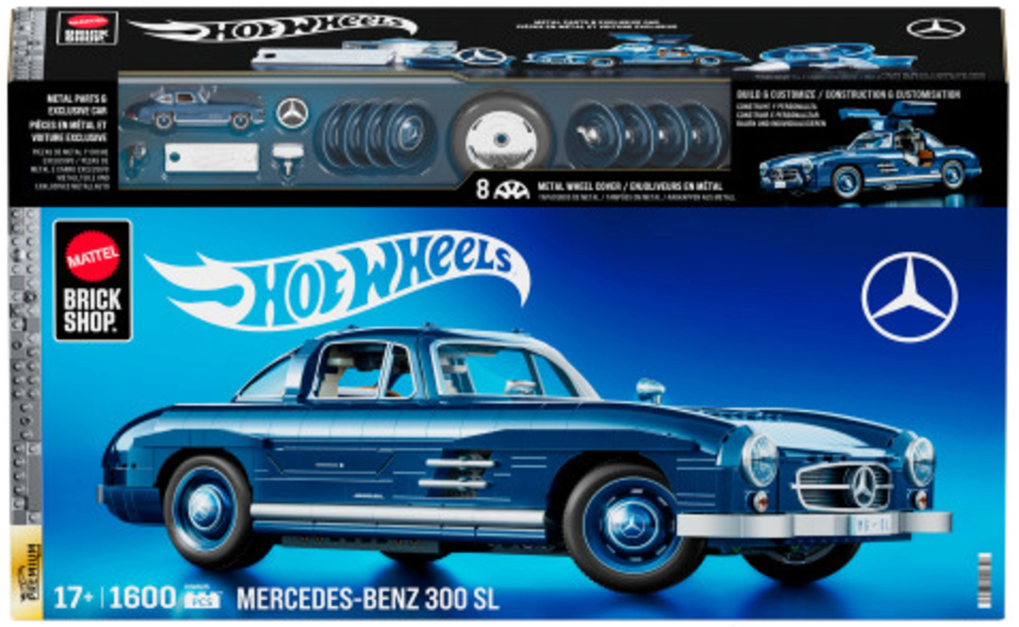 Costruisci l’iconica Mercedes‑Benz 300 SL in scala 1:12 con 1600 pezzi della serie HOT WHEELS Brick Shop. Il modello colpisce per la carrozzeria blu, i numerosi elementi mobili (porte, cofano e bagagliaio apribili, sterzo delle ruote) e i componenti in metallo per la personalizzazione (cerchi, specchietti, logo). Inclusi anche un mini modello da collezione 1:64 e un packaging elegante ideale come regalo.