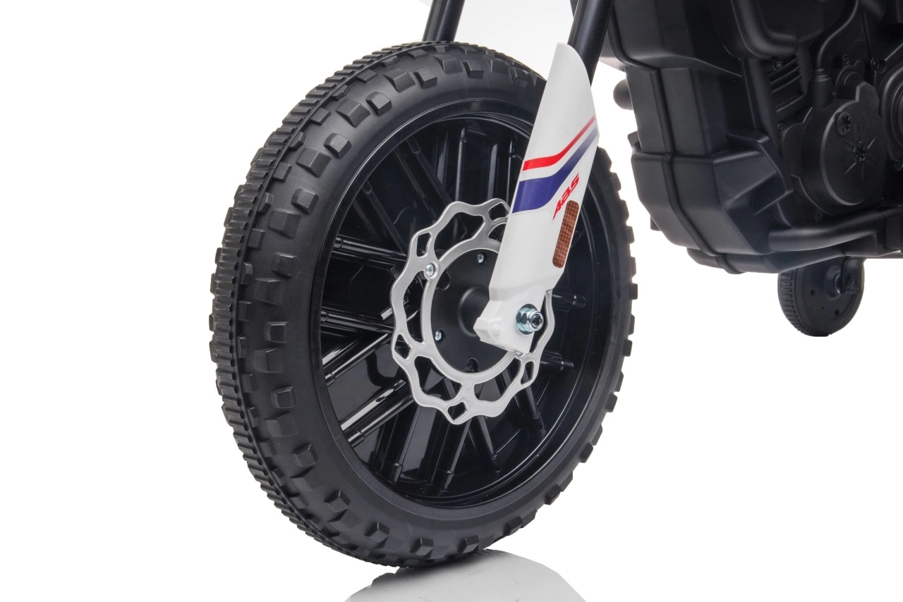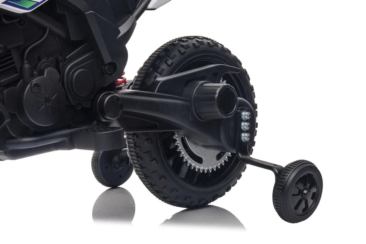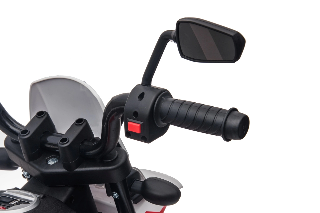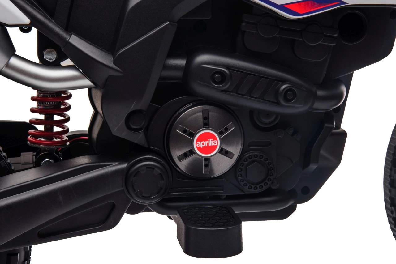 La stilosa moto elettrica per bambini APRILIA RX entusiasmerà i piccoli piloti con l’aspetto realistico, il potente doppio motore 2x35 W e le sicure rotelle laterali. Offre una batteria 12 V 7 Ah per corse più lunghe, ruote in EVA per un funzionamento silenzioso e confortevole, fari anteriori a LED e un pannello audio multimediale con MP3/USB/Bluetooth. La comoda sella in eco‑pelle e la sospensione posteriore a molla garantiscono comfort anche su superfici irregolari.