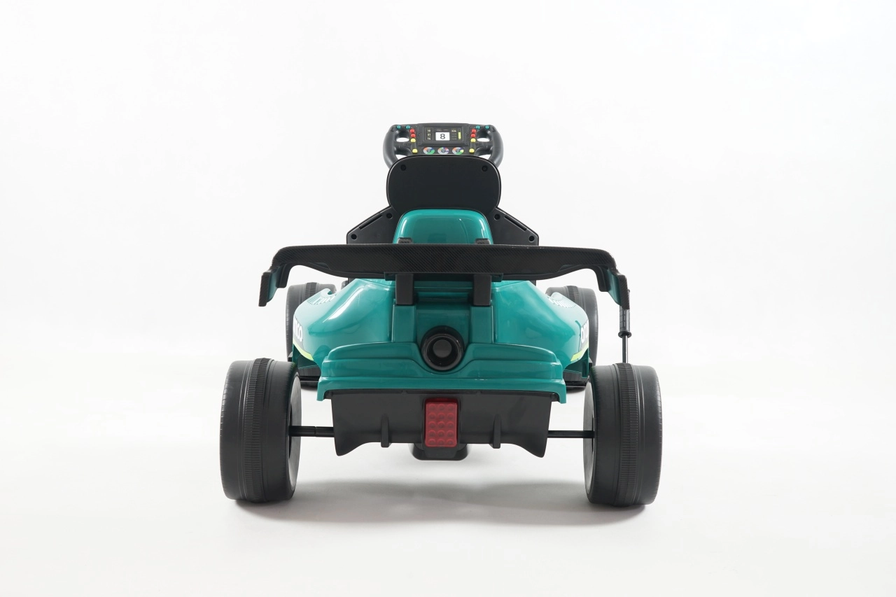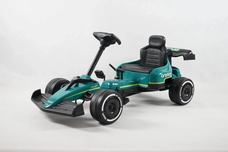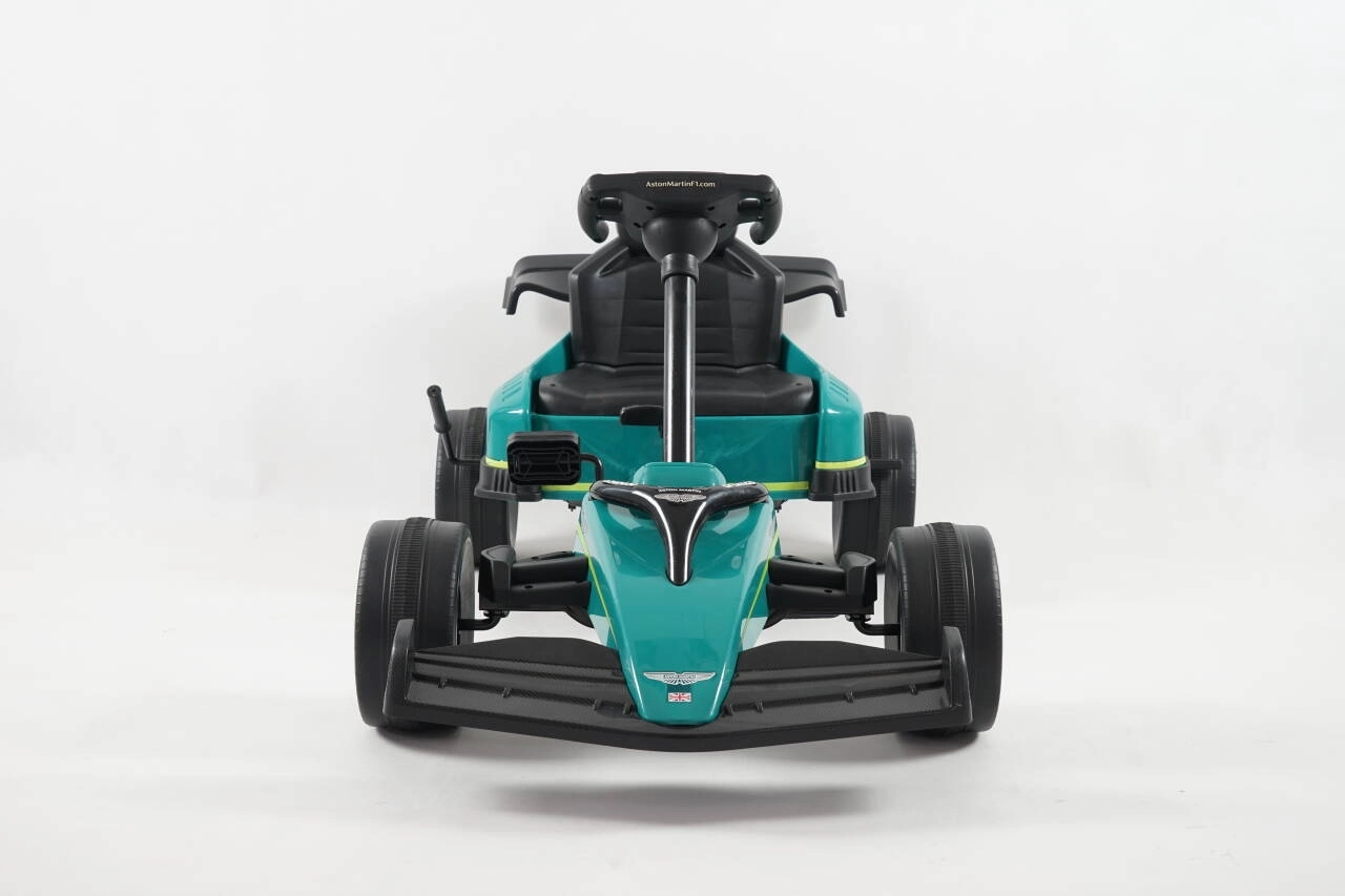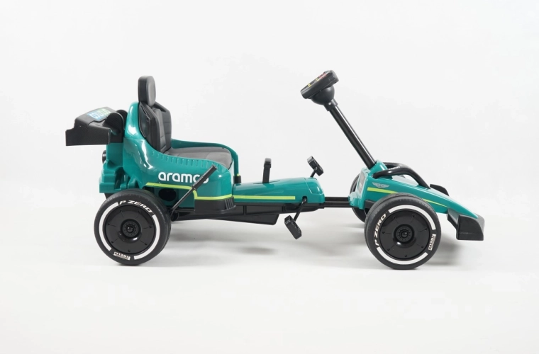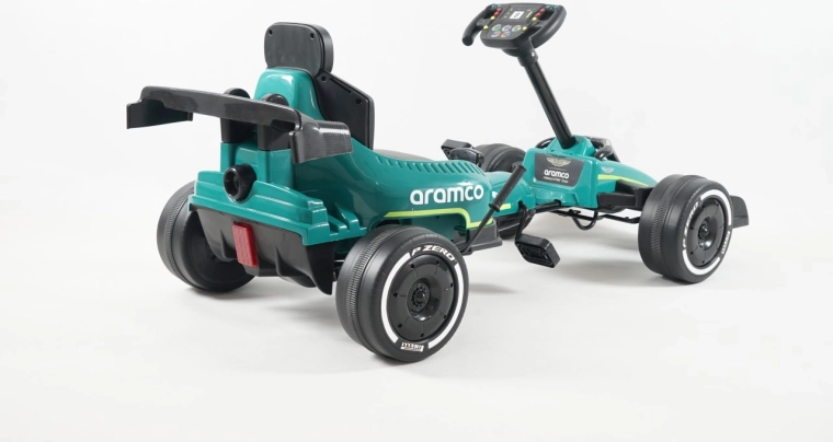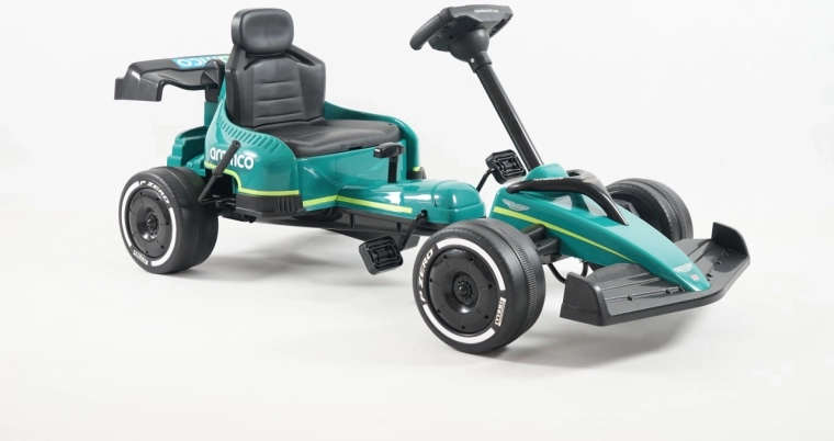 Elegante go-kart per bambini ispirato al marchio ASTON MARTIN, conquista con la struttura robusta, la guida fluida e l’eccellente maneggevolezza. Dispone di trasmissione a catena con carter completo, ruote EVA con cuscinetti a sfera per una marcia silenziosa, freno a mano e cambio per marcia avanti/indietro e folle. Portata massima 25 kg e sedile sportivo profilato per garantire comfort e sicurezza.