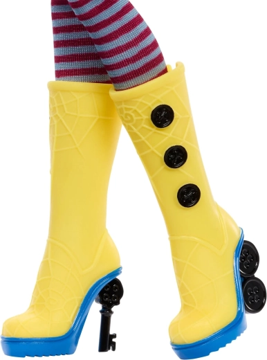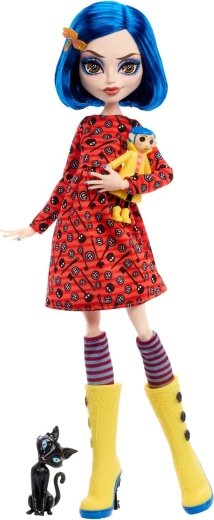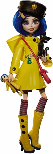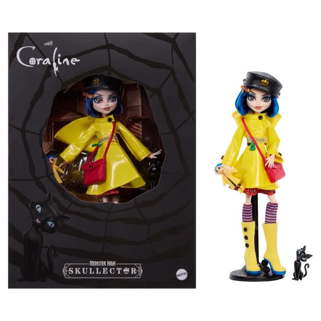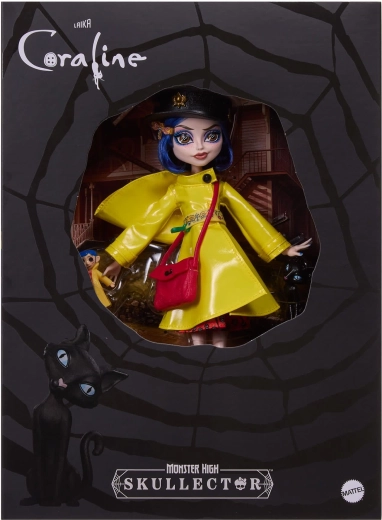 Scopri il fascino della dark fantasy con la bambola CORALINE in un’interpretazione unica Monster High Skullector. Il cappottino giallo con bottoni, i calzini a righe e gli stivali alti gialli con dettagli a ragnatela richiamano fedelmente il film. Inclusi anche la mini bambola di Coraline con occhi a bottone, una borsa elegante, un cappello e la figure del gatto nero.
