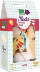 Deliziate i vostri bambini con un set di alimenti in legno di alta qualità che porta un tocco di realtà nella loro cucina giocattolo. Il set include: