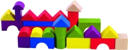 Costruzione colorata in legno per bambini che contiene 100 blocchi di varie forme, sviluppa l'immaginazione e la motricità fine.