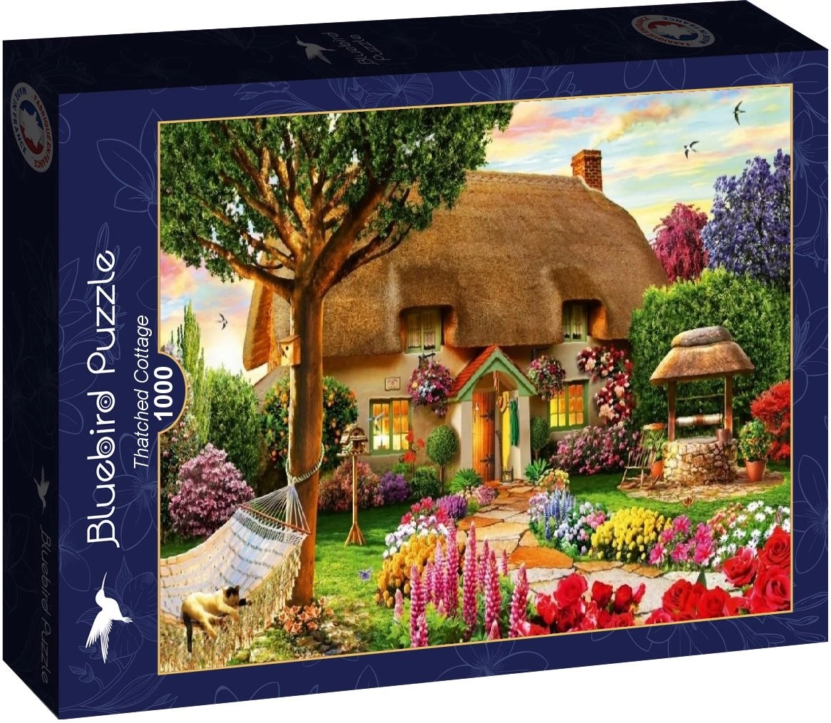 Goditi il relax con il puzzle BLUEBIRD di alta qualità con il motivo della tradizionale casa dal tetto di paglia. Assemblaggio da 1000 pezzi per ore di divertimento, un bellissimo risultato di 69 × 48 cm ed è ideale per i amanti dei tranquilli scenari rurali.