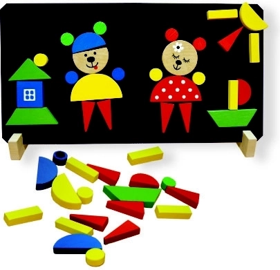Puzzle magnetici Orsi offre un modo divertente e creativo per sviluppare la motricità fine e l'immaginazione dei bambini. Il set include una lavagna magnetica e 37 pezzi di legno, con i quali è possibile creare diverse immagini.