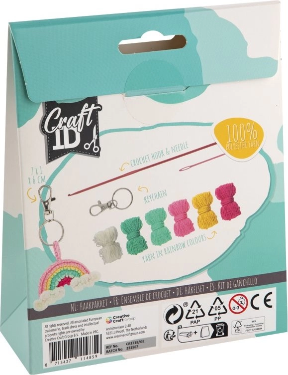 Crea il tuo portachiavi all’uncinetto a forma di arcobaleno con questo pratico kit CRAFT ID. Ideale per principianti e utenti avanzati, il portachiavi è carino, originale e perfetto come regalo. Nella confezione trovi tutto il necessario: filato, imbottitura, uncinetto e ago in plastica, così puoi iniziare subito.