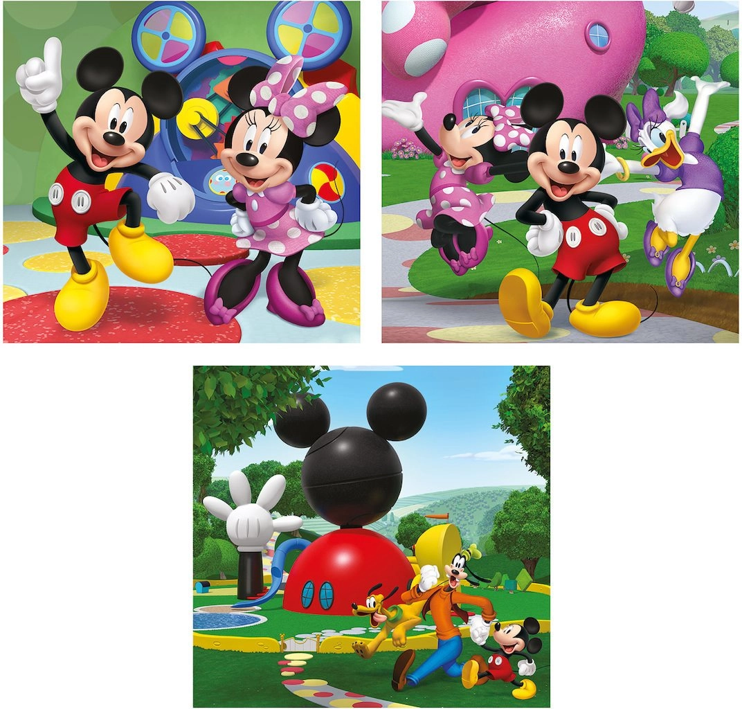 Tre puzzle colorati con i motivi del CLUBHOUSE DI TOPOLINO faranno felici i piccoli amanti dei personaggi Disney. 48 pezzi per ogni puzzle sono ideali per allenare la concentrazione, sviluppare la manualità fine e le capacità di osservazione. Grazie ai materiali di qualità e alla stampa di alto livello, le immagini mantengono a lungo colori vividi e brillanti.