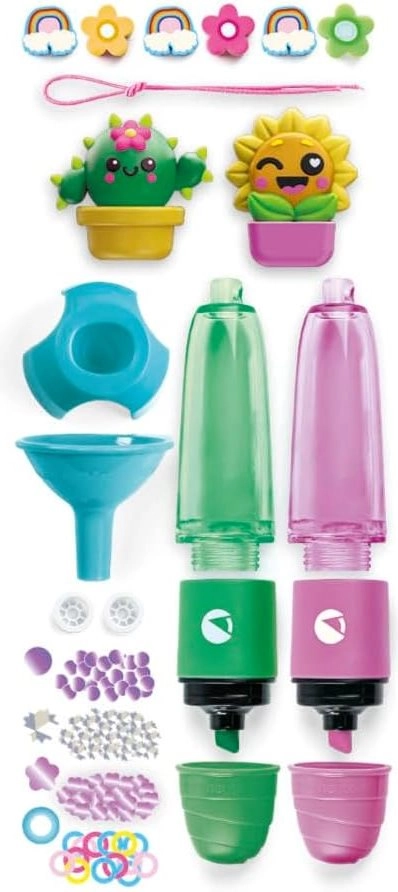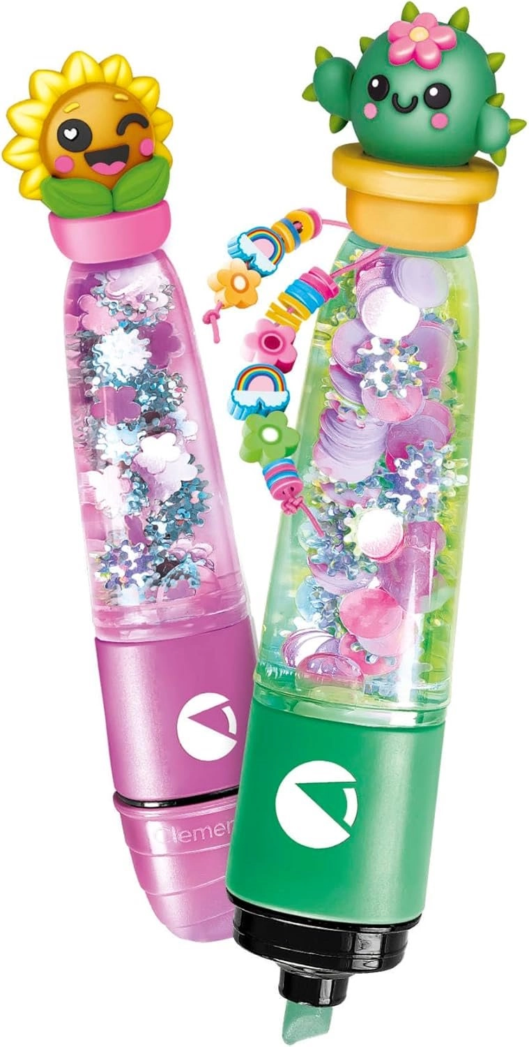 Con questo set i bambini assemblano e decorano due evidenziatori unici, nei cui corpi trasparenti possono aggiungere glitter, perline e decorazioni galleggianti. Gli adorabili toppers a forma di cactus e girasole trasformano ogni scrittura in un gioco e l’evidenziazione in un divertimento di stile.