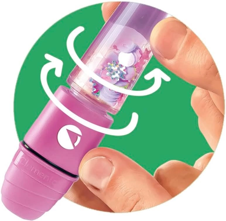 Tutto è progettato per essere intuitivo e sicuro: dai semplici strumenti agli inchiostri colorati fino al set di piccole decorazioni. Prodotto sviluppato in Italia e caratterizzato dal tipico tocco del marchio CLEMENTONI – qualità costruttiva, valore educativo e design giocoso.