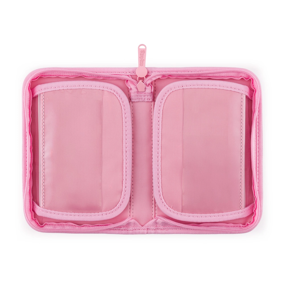 Elegante astuccio scolastico rosa con motivo cavallo e due alette, dotato di 25 passanti elastici per organizzare in modo ordinato il materiale di scrittura. Grazie alle tasche trasparenti per l’orario avrai sempre il piano delle lezioni a portata di mano. Le dimensioni compatte e la chiusura con zip perimetrale garantiscono un trasporto facile e una chiusura sicura.