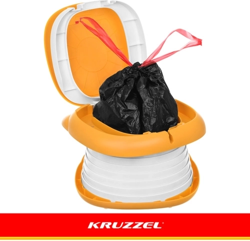 - vasino da viaggio KRUZZEL Leone, sacchetti igienici monouso, manuale multilingue, confezione in cartone