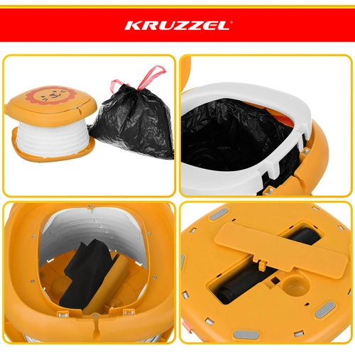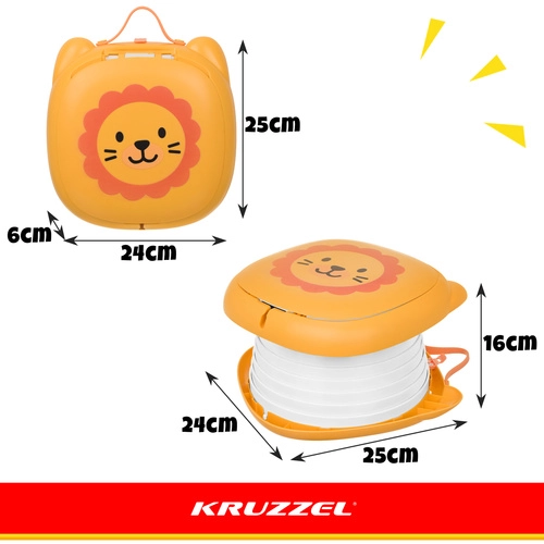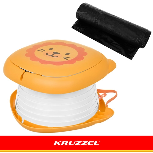 Il vasino pieghevole KRUZZEL – Leone è progettato per il comfort dei bambini e la tranquillità dei genitori in viaggio. Il simpatico design del leone incoraggia il bambino a usarlo anche fuori casa, mentre la robusta struttura in ABS e il soffietto in silicone garantiscono comfort, stabilità e facile pulizia. Lo scomparto integrato per il rotolino di sacchetti significa che hai sempre tutto a portata di mano.