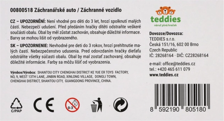 Il piccolo camion dei pompieri in plastica lungo 12 cm con meccanismo a retrocarica farà felici tutti i piccoli soccorritori. Basta tirarlo indietro e il veicolo parte rapidamente in avanti da solo. Il realistico colore rosso con la scritta “Hasiči” è ideale per giocare in casa e all’aperto e, grazie alla confezione da 10 pezzi in scatola, è perfetto per un divertimento maggiore con fratelli o amici.