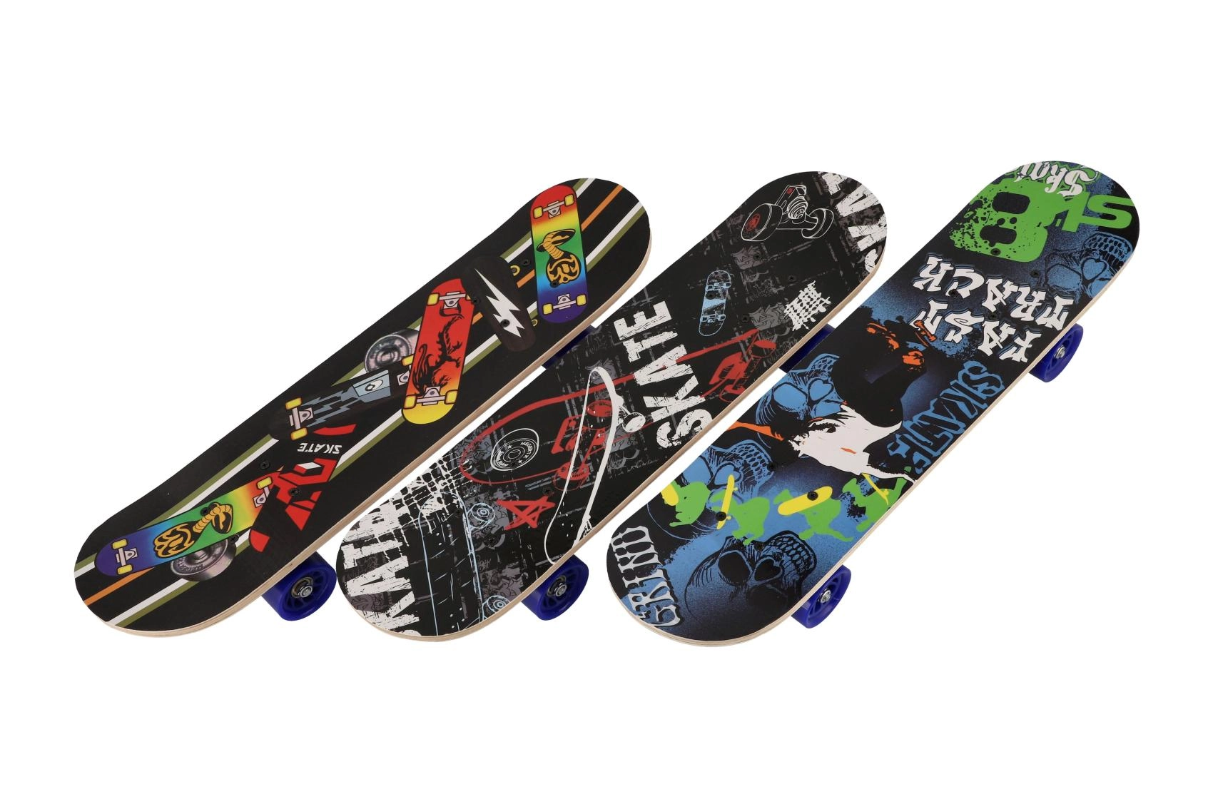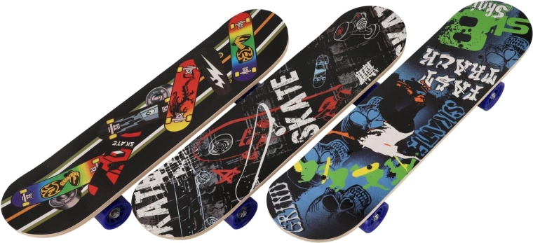 Leggero e resistente, lo skateboard per bambini in legno d’acero lungo circa 60 cm è una scelta ideale per i piccoli rider. Offre una struttura solida e stabile, truck in alluminio e ruote in PU di qualità per una guida fluida e silenziosa. Grazie alle dimensioni compatte è facile da controllare ed è adatto a principianti e bambini più esperti. La portata massima è di 60 kg e la grafica accattivante è disponibile in 3 varianti di colore.