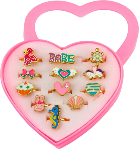 Scopri un set incantato di anellini che stimola creatività e fantasia, perfetto anche per il gioco di ruolo. Gli anelli in metallo hanno una circonferenza regolabile in modo fluido, così si adattano facilmente alle dita dei bambini e risultano comodi per tutto il giorno. L’elegante astuccio a forma di cuore funge da pratico contenitore e grazioso accessorio da viaggio.