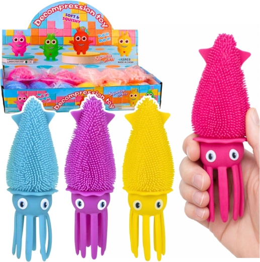 Il calamaro sensoriale da schiacciare è piacevolmente morbido, elastico e torna rapidamente alla forma originale dopo la pressione. Grazie alla superficie testurizzata con delicati puntini, stimola i sensi e aiuta a rilasciare tensione e stress. La dimensione compatta è perfetta per la mano, la borsa e il banco di scuola.