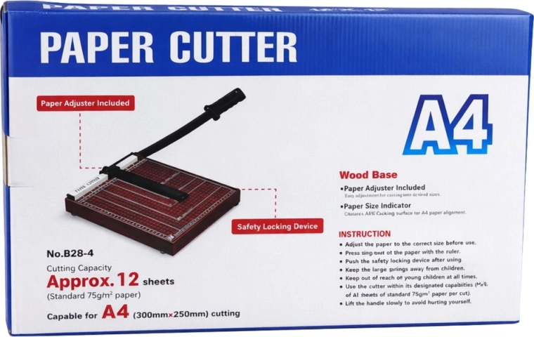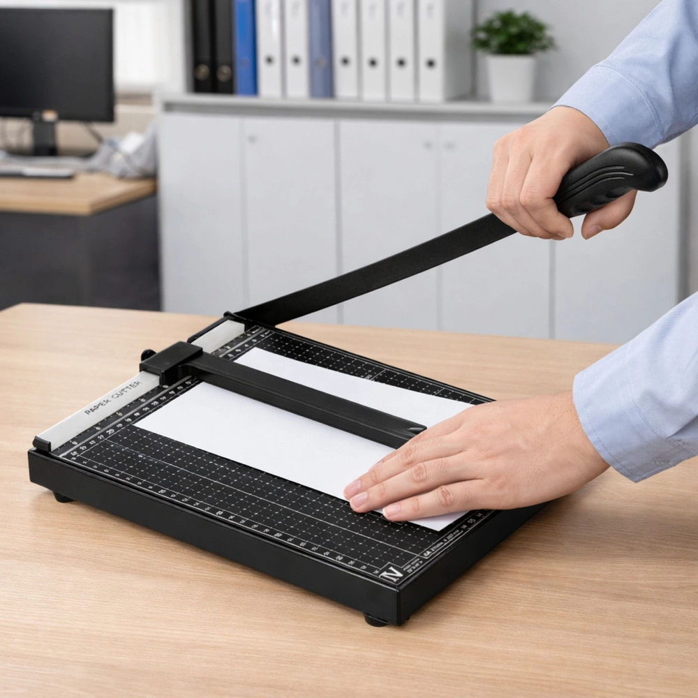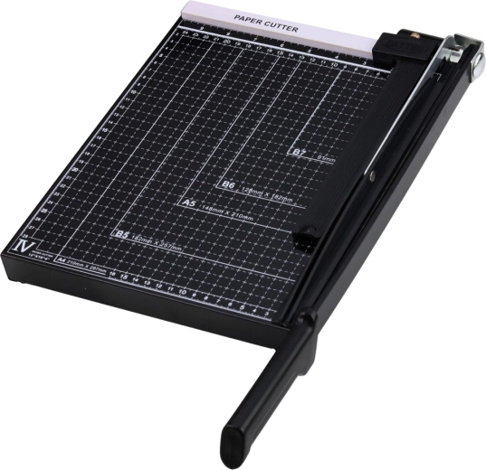 Questa taglierina per carta A4 è ideale per uffici, scuole, tipografie e laboratori domestici. La base stabile con linee di misurazione e marcature dei formati aiuta a posizionare con precisione il documento prima del taglio. Il braccio di taglio in metallo con leva lunga facilita un taglio pulito e diritto senza grande sforzo.