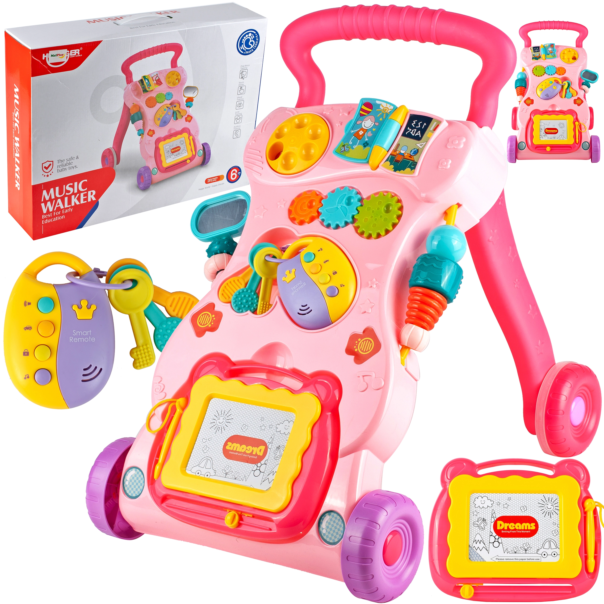 Sostenete i primi passi del vostro bambino con un girello che combina sicurezza, divertimento e apprendimento. Il colore rosa, la lavagna interattiva removibile e le chiavette invitano alla scoperta, mentre le 12 melodie motivano a muoversi di più. Grazie alle dimensioni compatte è facile da usare in casa e in viaggio.