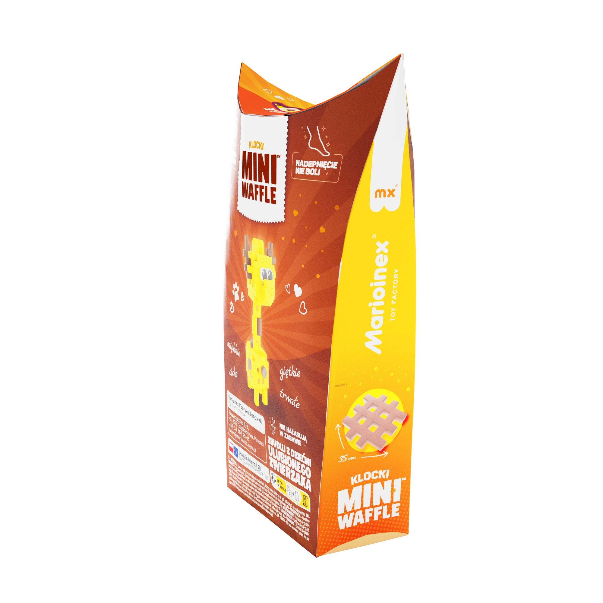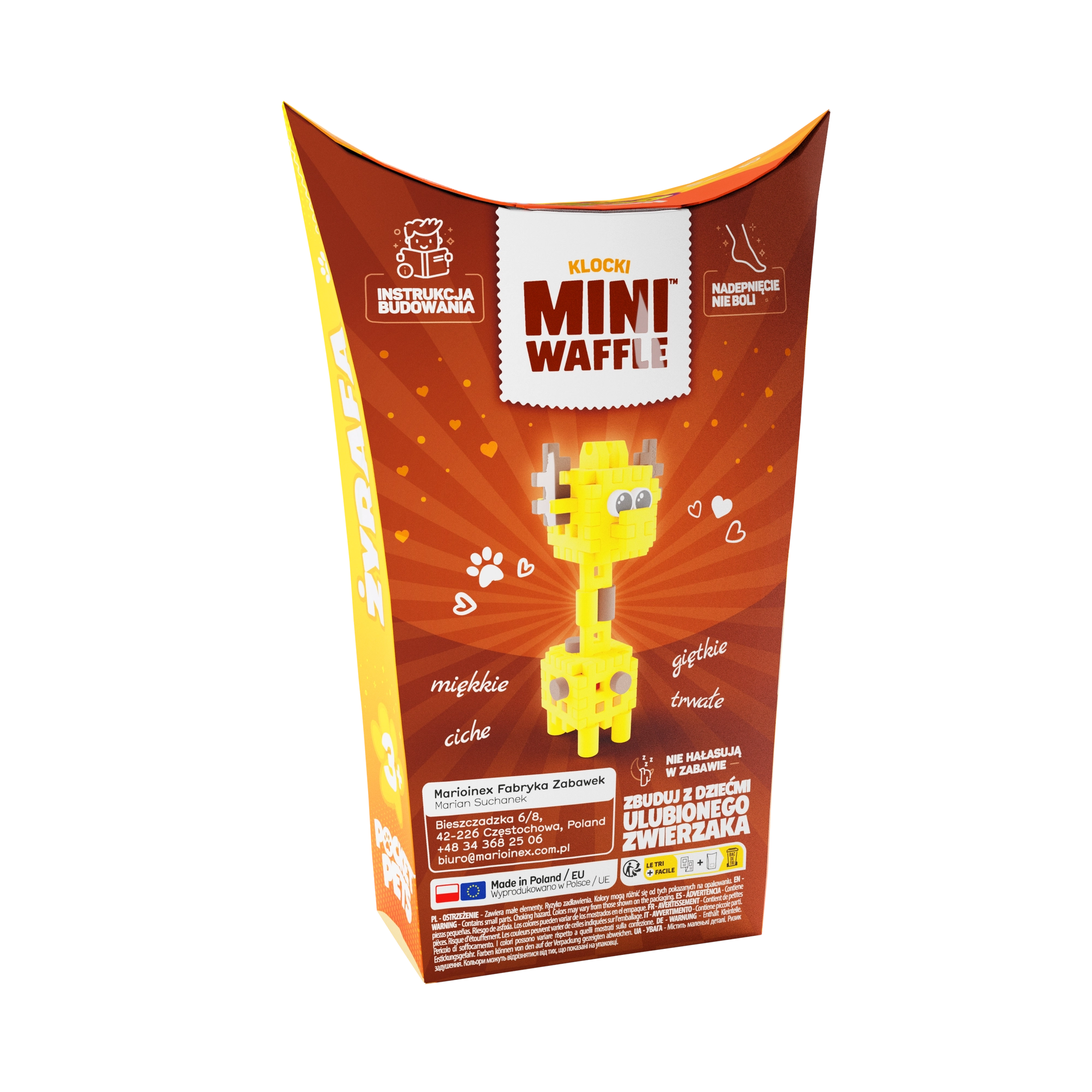 Scopri il mondo creativo con il set di costruzioni Mini Waffle Pocket Pets – Giraffa del brand Marioinex. Questo set compatto con 35 pezzi colorati permette di costruire in 2D e 3D, sviluppa la motricità fine, il pensiero logico e la fantasia. I pezzi sono elastici, resistenti e sicuri, si collegano e si separano facilmente: ideali per costruzioni ripetute a casa e in viaggio.