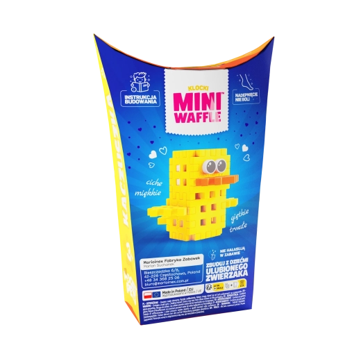 Scopri il mondo creativo con il mini set di costruzioni MARIOINEX Mini Waffle Pocket Pets. Un set compatto con 16 pezzi colorati permette ai bambini di costruire una deliziosa figurina di anatroccolo, sviluppando creatività, motricità fine e pensiero logico. I pezzi sono morbidi, resistenti e sicuri, si uniscono e si separano facilmente e si abbinano perfettamente ad altri set Mini Waffle.