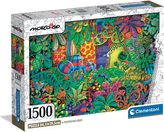 Immergiti nel mondo delle illustrazioni umoristiche di MORDILLO e scopri il piacere dell'assemblaggio con il puzzle CLEMENTONI. Stampa di alta qualità, tagli precisi e cartone robusto garantiscono un incastro perfetto e una lunga durata. Il puzzle da 1500 pezzi è la scelta ideale per i puzzlisti più esperti che cercano una sfida e al tempo stesso relax.