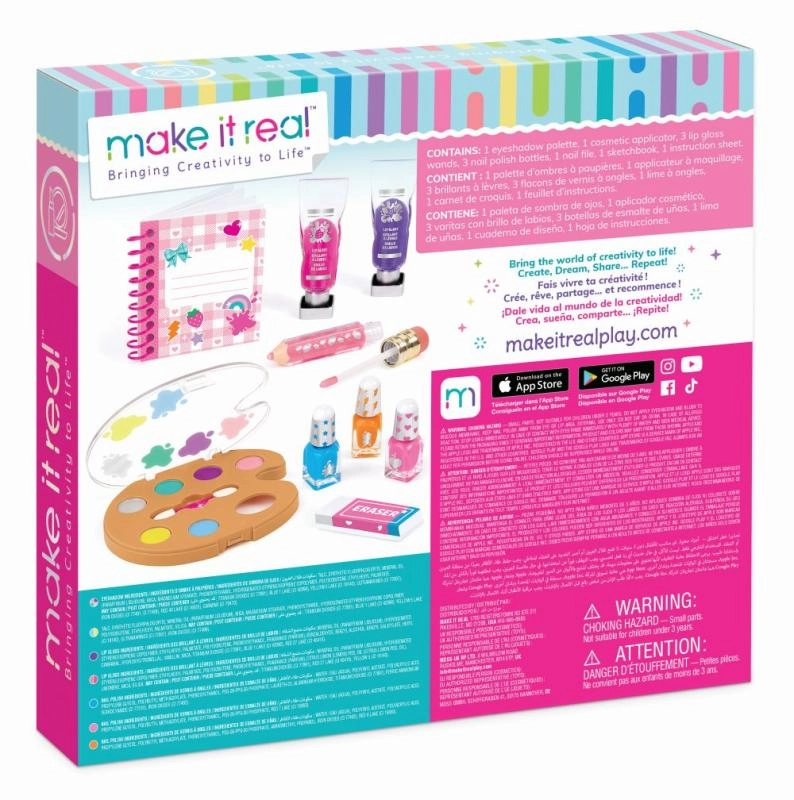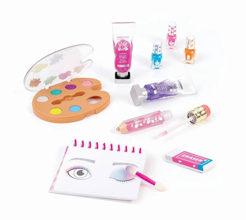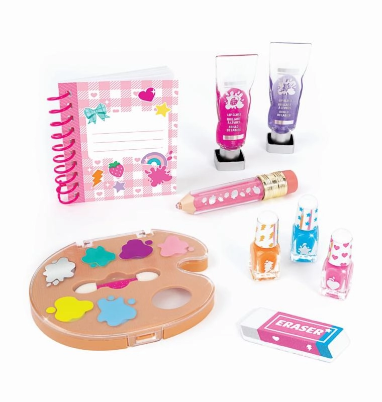 Il set include lucidalabbra stilizzati come tubetti da pittore, tre smalti in tonalità brillanti e una lima per unghie a forma di gomma per unghie sempre in ordine. Tutto è progettato per favorire il gioco creativo, la sperimentazione sicura e lo sviluppo dello stile per bambini dagli 8 anni.