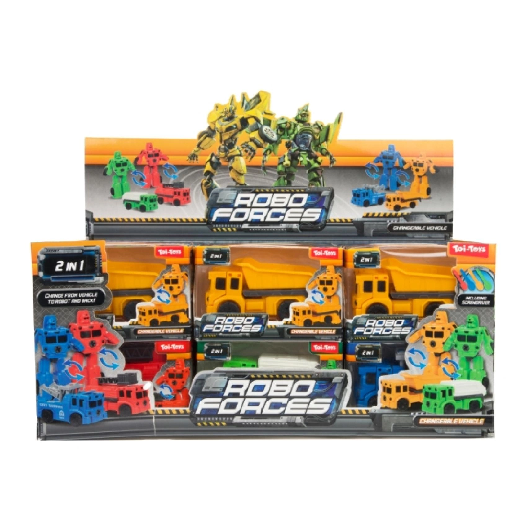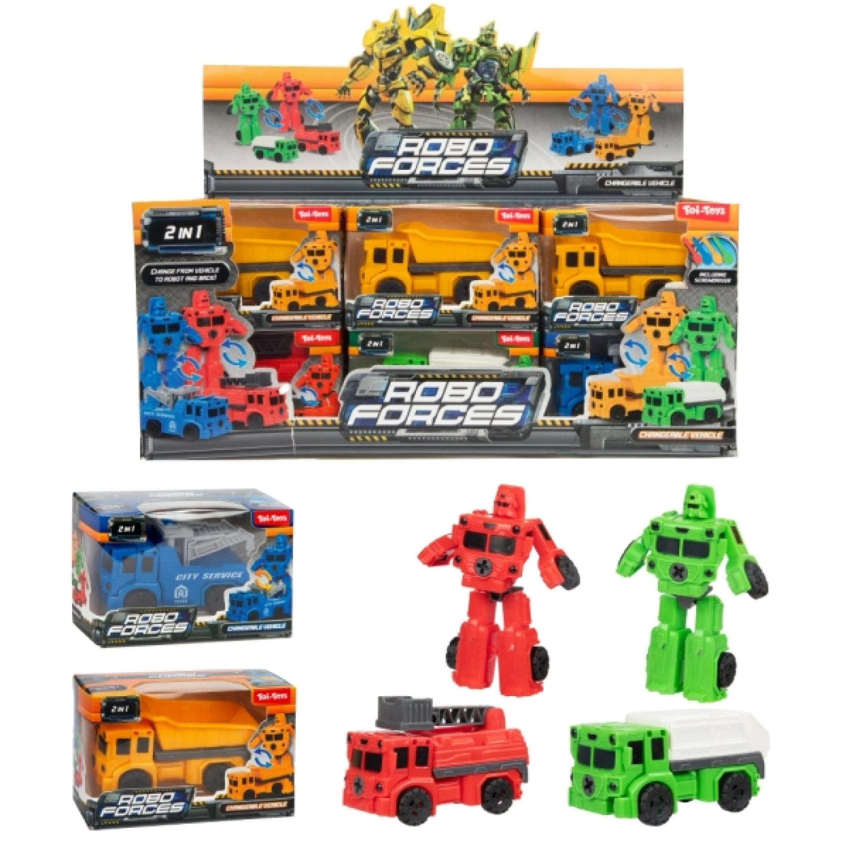 Giocattolo divertente per i piccoli appassionati di tecnologia: mini veicolo che si trasforma facilmente in robot e viceversa. Offre un doppio divertimento, stimola creatività e fantasia ed è ideale a casa e in viaggio.