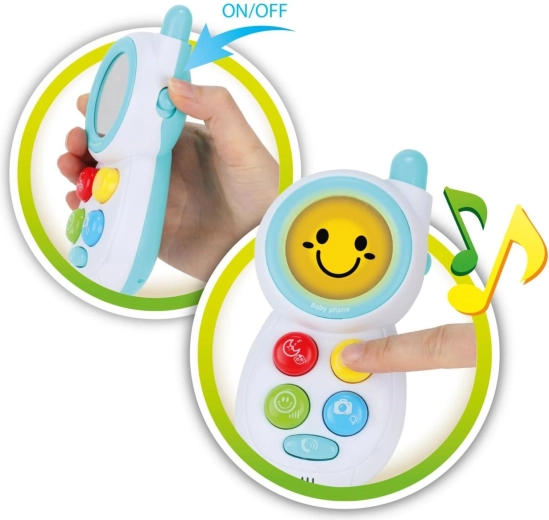 Il grazioso telefono cellulare per bambini è un gioco ideale per sviluppare i sensi e la curiosità di neonati e bimbi piccoli. I tasti colorati attivano effetti sonori e melodie che stimolano l’udito e l’attenzione, mentre gli effetti luminosi supportano la percezione visiva. Sul lato frontale si trova un grande specchietto sicuro grazie al quale i bambini scoprono il proprio riflesso e allenano la consapevolezza di sé.