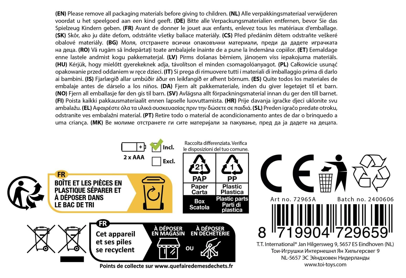 Il giocattolo è progettato pensando alle mani piccole: la forma ergonomica e il controllo semplice consentono una presa comoda e una facile pressione dei tasti. Le dimensioni compatte sono adatte sia in casa che in viaggio e la robusta struttura in plastica garantisce resistenza durante il gioco quotidiano.