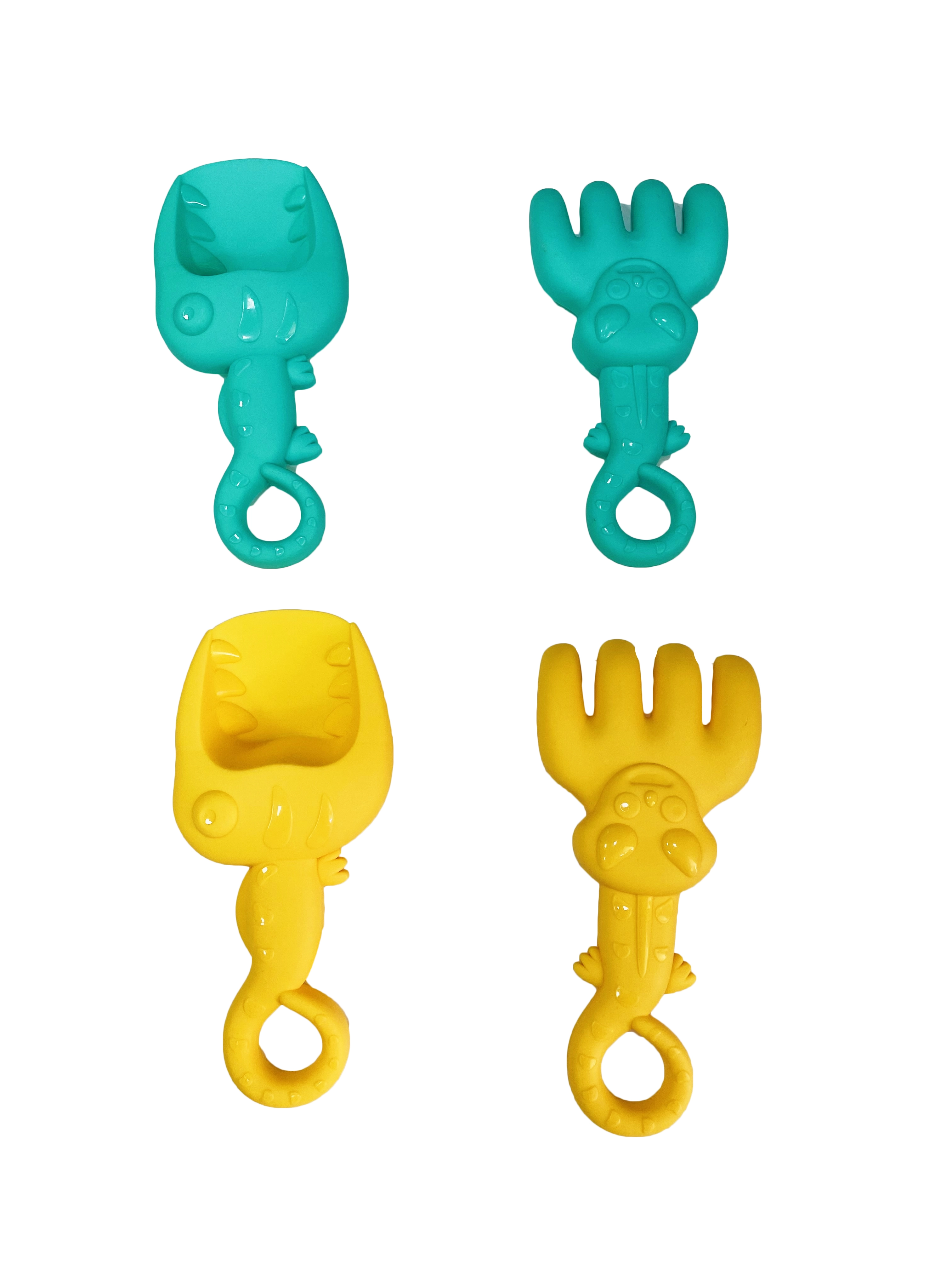 Paletta e rastrellino leggeri con impugnature comode permettono ai bambini di scavare, raccogliere e modellare la sabbia con facilità.