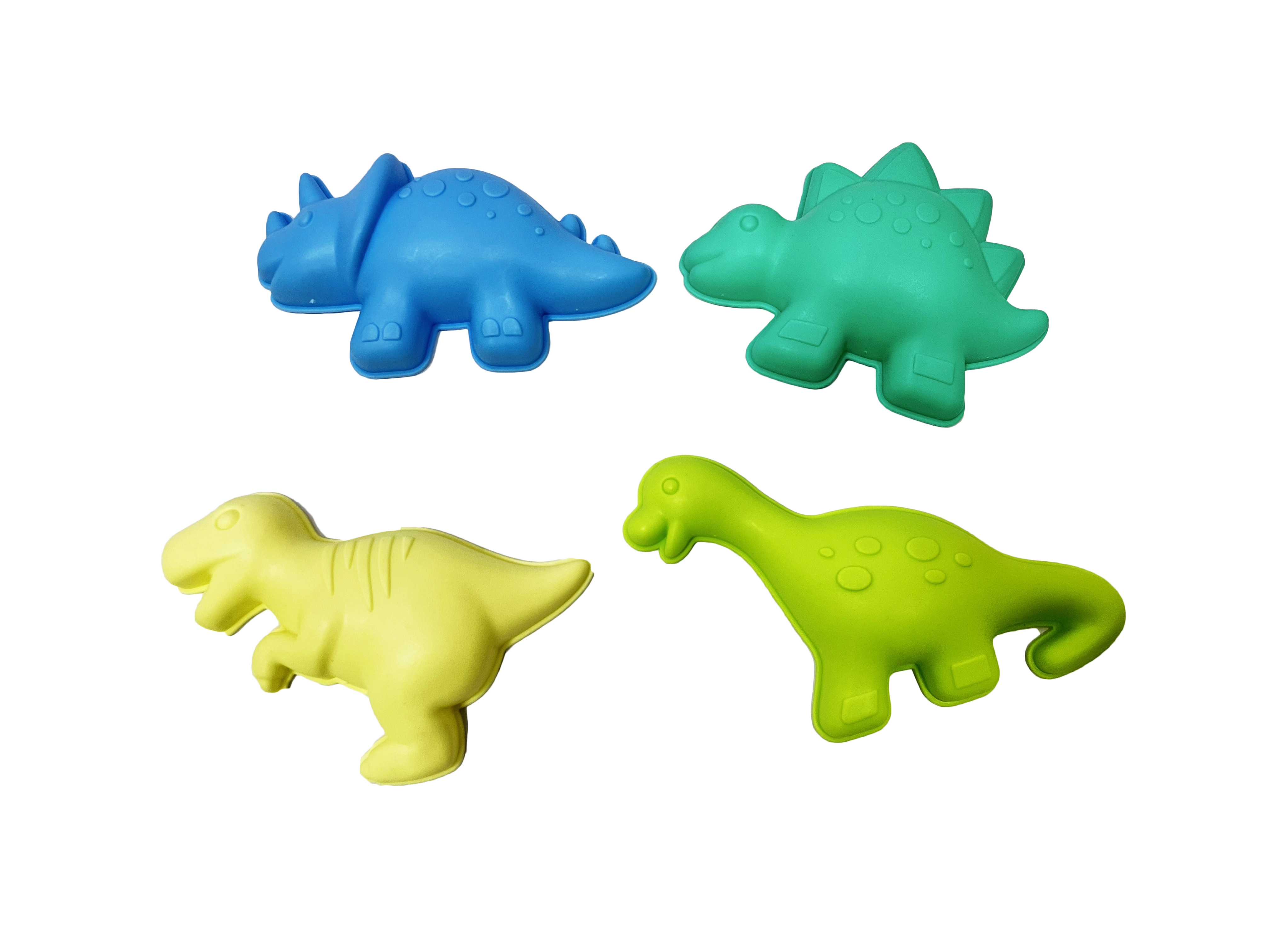 Quattro simpatiche sagome di dinosauri ispirano i bambini a un gioco fantasioso e sviluppano la loro immaginazione.