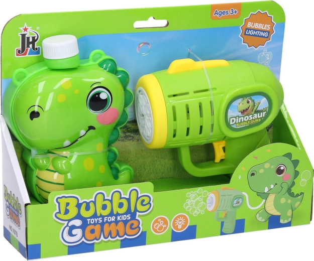 Divertente pistola per bolle a forma di dinosauro con grande serbatoio esterno da 280 ml, crea tantissime bolle colorate senza continue ricariche. Controlli semplici, soffiaggio automatico delle bolle e dimensioni compatte la rendono una scelta perfetta per i bambini in giardino, al parco giochi e alle feste di compleanno. Alimentazione con 3× batterie AA (non incluse).