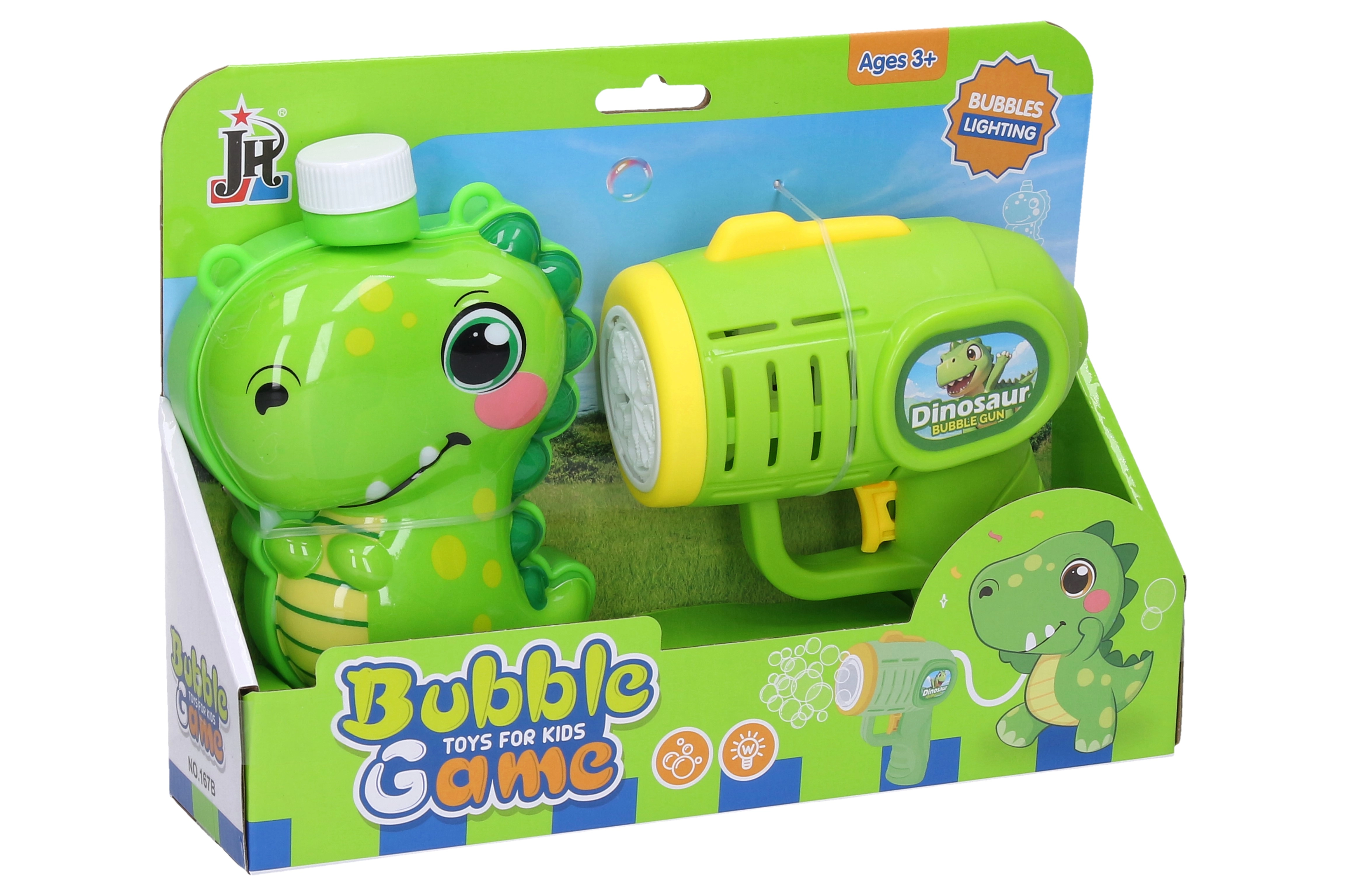 Scatena il divertimento delle bolle con la pistola a bolle a forma di dinosauro! Grazie al serbatoio esterno da 280 ml, i bambini possono godersi lunghi minuti di creazione continua di bolle senza frequenti ricariche. Basta inserire le batterie, riempire il serbatoio e premere – la pistola soffia automaticamente una grande quantità di bolle.