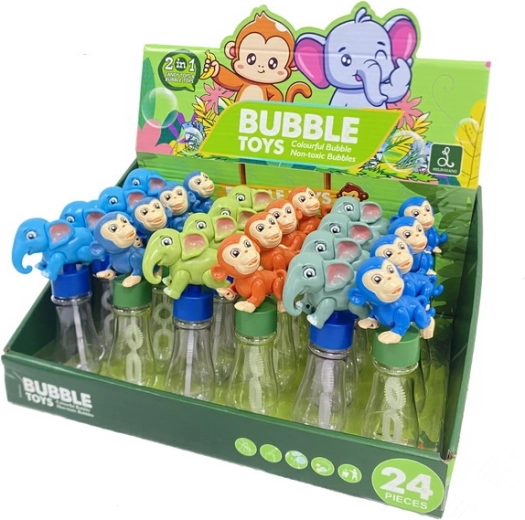 Divertente bolle di sapone a tema safari che regala ai bambini un'infinita dose di allegria. Grazie al volume di 35 ml e alle dimensioni compatte è perfetto per gite e feste. Disponibile in 4 varianti (elefante blu, elefante verde, scimmia blu, scimmia arancione) ed è ideale per giochi all'aperto.