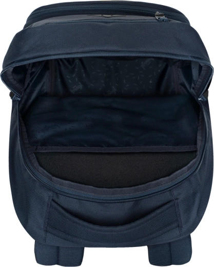 L’organizzazione interna soddisfa ogni studente: tre scomparti separati con chiusura, tasca imbottita per notebook da 17", tasca separata per occhiali e organizer integrato per gli oggetti piccoli. La pratica tasca isolata per la merenda mantiene il contenuto fresco più a lungo, mentre il sistema autoavvolgente per chiavi/chip assicura un accesso rapido e sicuro. Le cerniere YKK di qualità e la portata fino a 10 kg sottolineano la lunga durata. La certificazione Global Recycled Standard (GRS) conferma una produzione attenta all’ambiente.