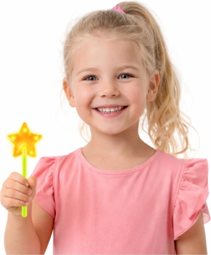 Divertente bacchetta luminosa con stella che offre un effetto incantevole per feste, festival ed eventi notturni. Si attiva con una semplice flessione e emette una luce neon intensa visibile al buio senza batterie. Struttura leggera, stick fluorescente e comoda lunghezza di 22 cm garantiscono un ottimo effetto visivo per bambini e adulti.