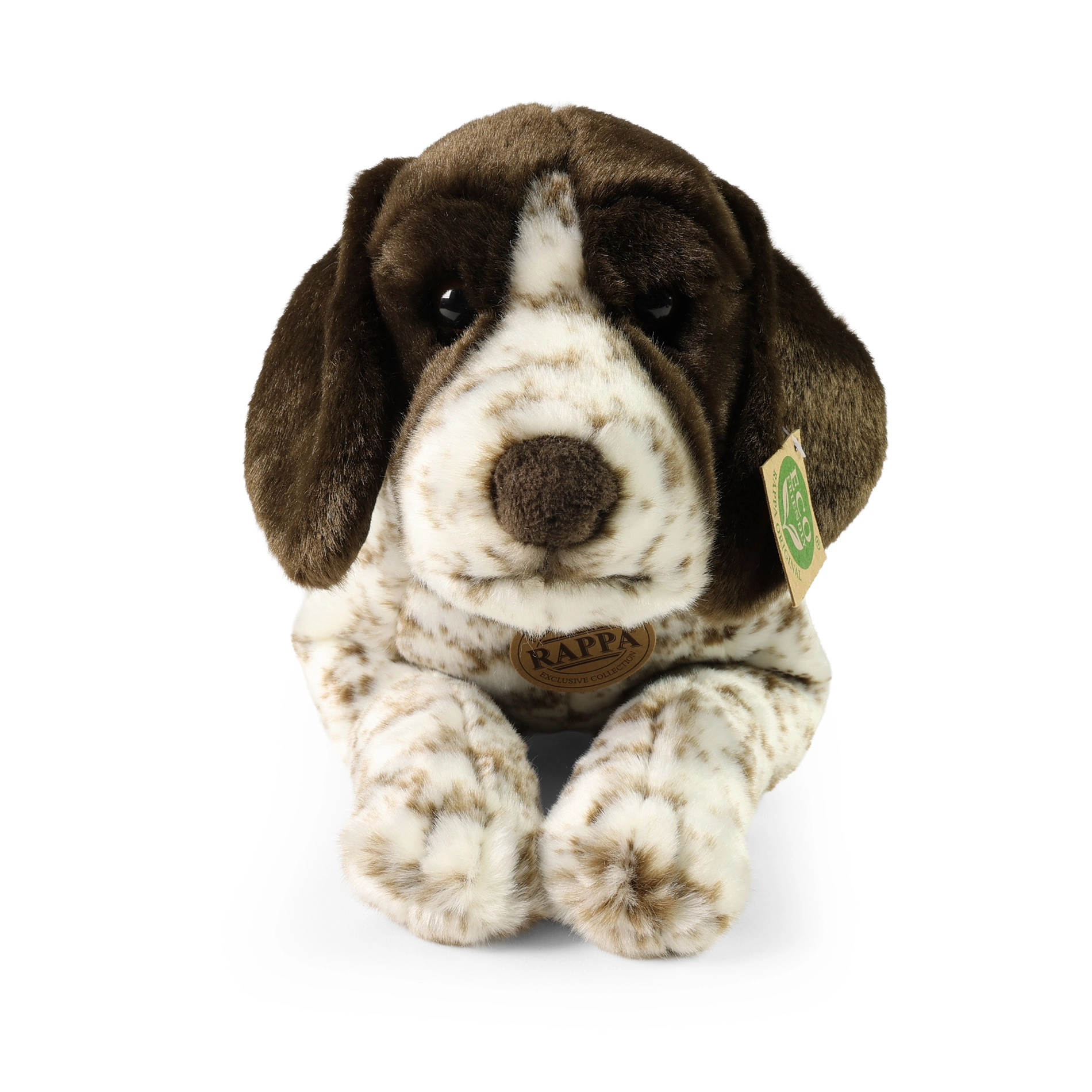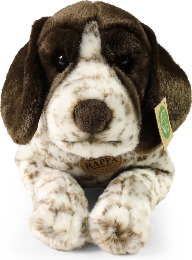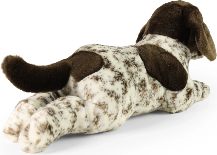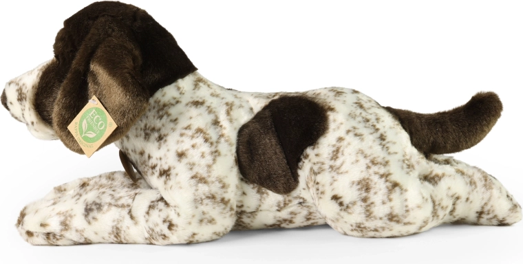 Colorazione fedele con macchiette marroni, superficie morbidissima e lavorazione dettagliata rendono il bracco di peluche un compagno perfetto da coccolare.