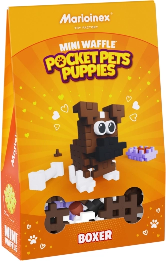 Scopri il set di costruzioni giocoso Mini Waffle Pocket Pets – boxer del marchio MARIOINEX. Set compatto con 50 pezzi colorati che permette ai bambini di costruire un cane boxer con accessori (ciotola con cibo, osso e pupù). I pezzi si collegano facilmente, sono elastici, resistenti e sicuri, e favoriscono la creatività, la motricità fine e il pensiero logico nella costruzione in 2D e 3D.